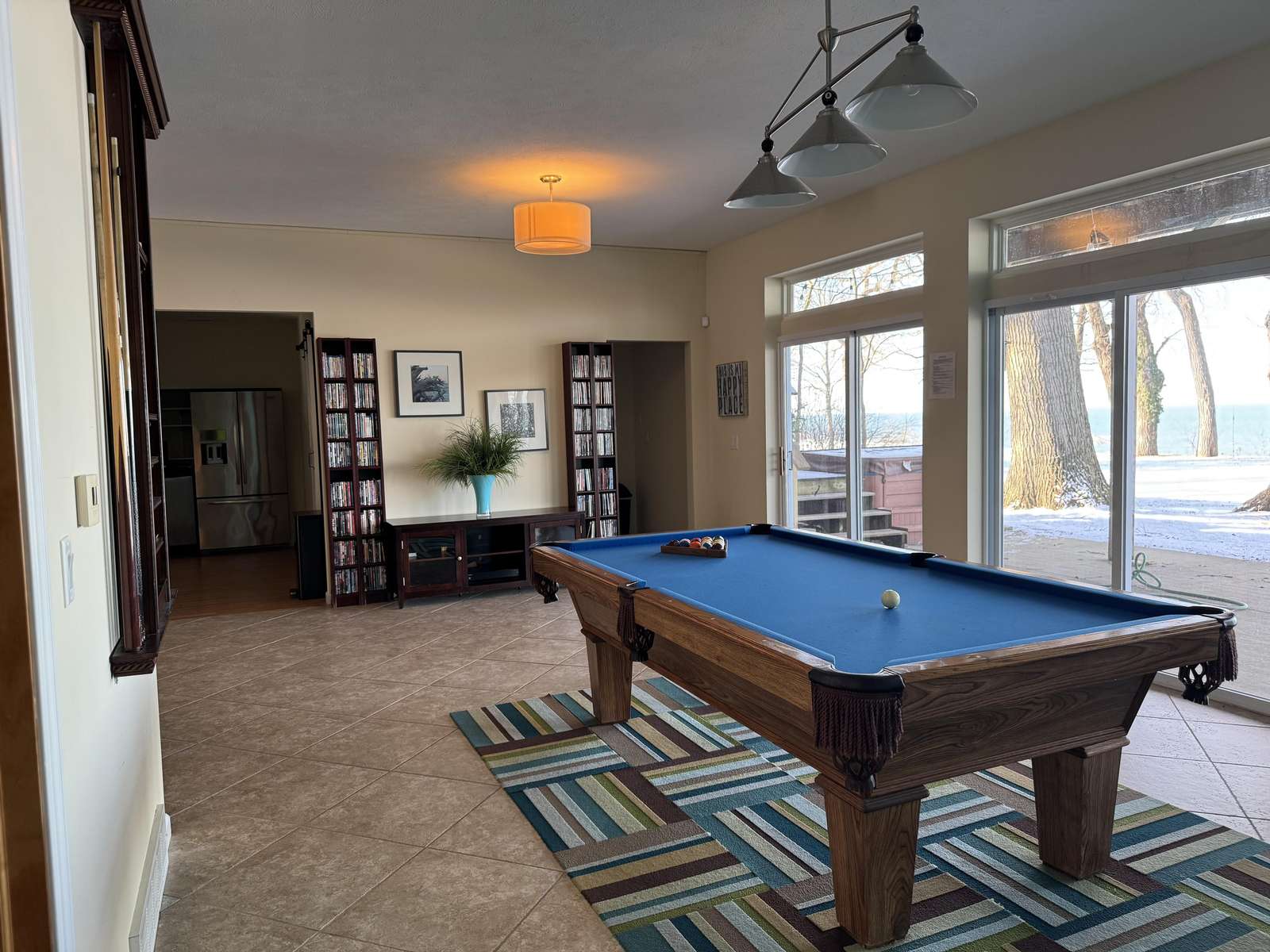 Amenities: Optional Heated pool (June-Sept), hot tub, 2 indoor jacuzzi tubs, private sandy swimming beach, outdoor shower, fireplace, double oven, cook top, french door bottom mount refrigerator, 55 inch LED HD TV with a Wii. All bedrooms have 44' LED HD TVs and DVD player, pool table, high speed wireless internet access. towels and linens provided, outdoor gas grill, patio furniture, new washer/dryer, new appliances.