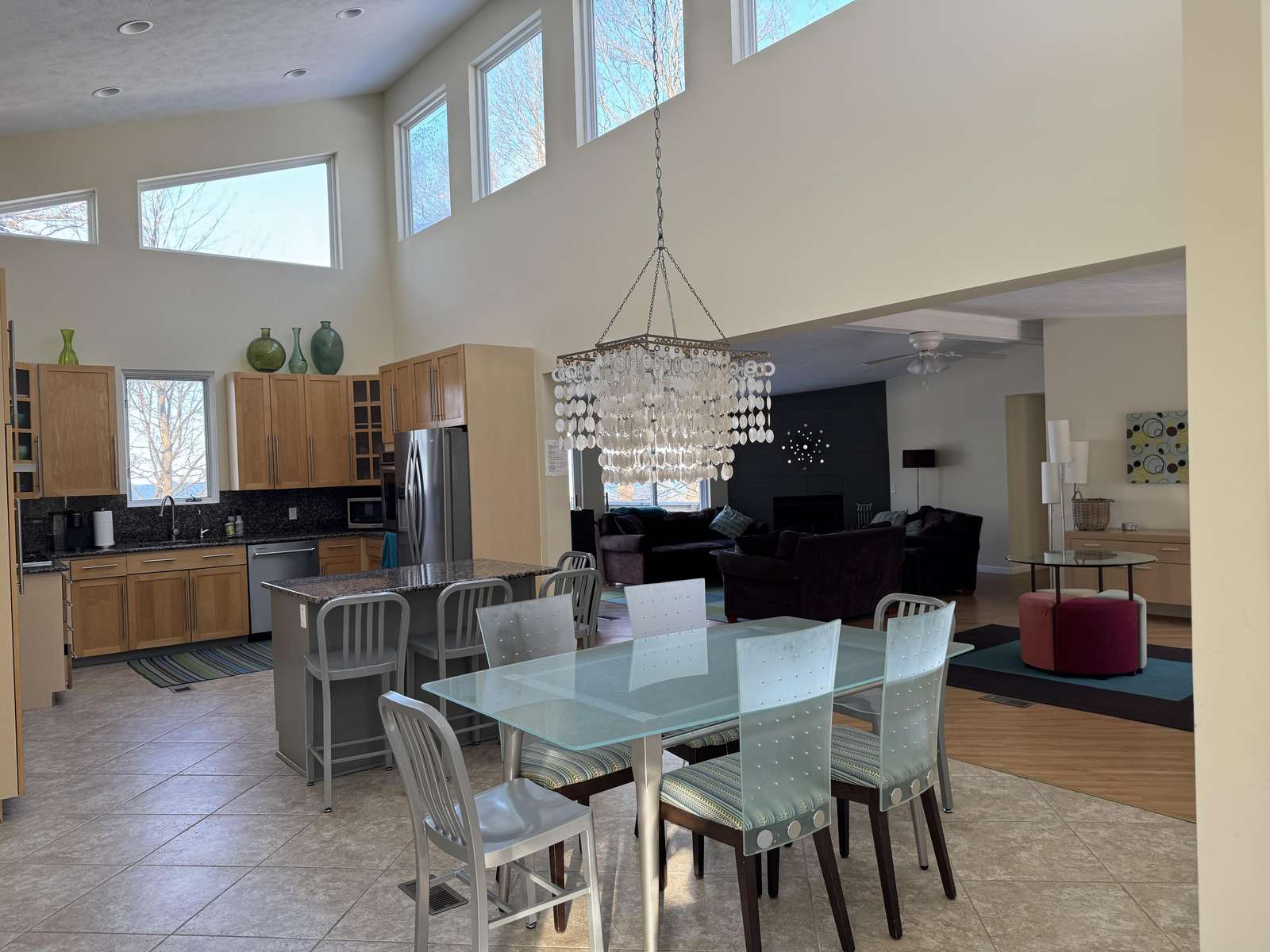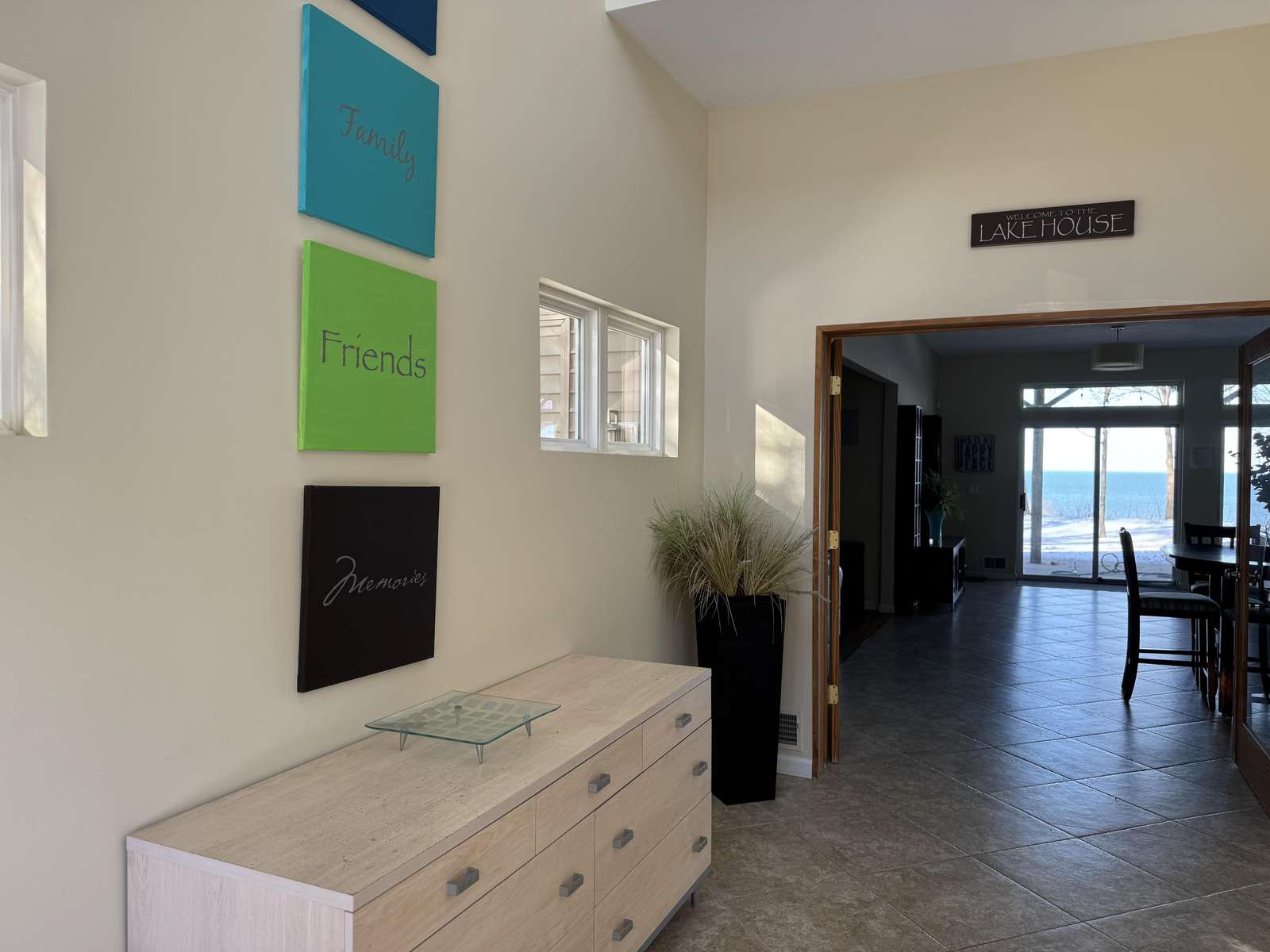 Our Beach Haven Luxury Home is an outstanding home on over a landscaped acre with 180 feet of private sandy swimming beach on Lake Michigan and a huge backyard. The home has over 4500 square feet & features beautiful views of the lake & sunsets from every room. A grand entryway rising 27 feet leads to a large family room and a dramatic living room, plus a modern gourmet kitchen with all stainless appliances. Each of the six bedrooms has its own private bath. Two of the bedrooms have their own private jacuzzi tubs along with a patio that leads to the hot tub or lake. This home has a large outdoor heated pool, a 7-8 person hot tub, a wood built in fireplace & an outdoor gas grill piped into the house. Other features include a pool table, 8 large screen LED HD TV's, high speed internet, Wii Game System, lots of DVD's, board games, 2 refrigerator/freezers, beach chairs & towels, upper/lower decks with patio furniture, & air conditioning. Sleeps up to 16. Heat charge for the pool is optional and only applies to summer rentals.